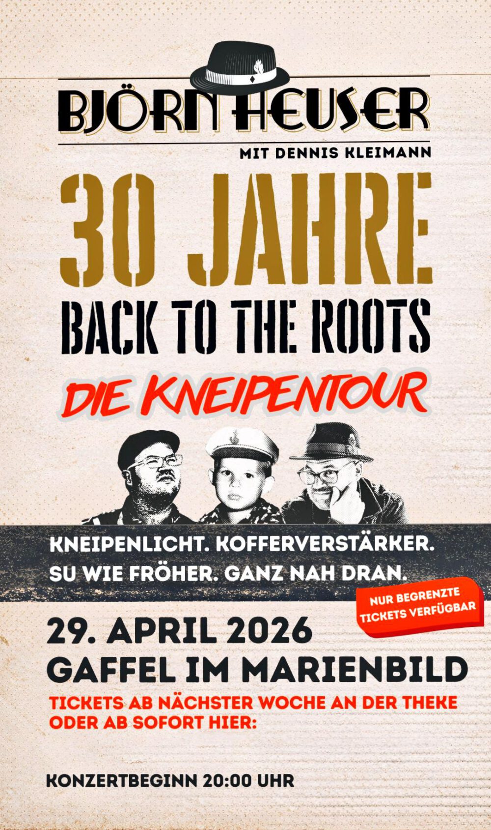 Heuser singt mit uns im Marienbild!4. März 20264. März 2026 Björn Heuser singt mit uns im Marienbild. Ölt Eure Stimmen mit knisterkaltem Gaffel-Kölsch und erlebt einen herrlich geselligen Abend.